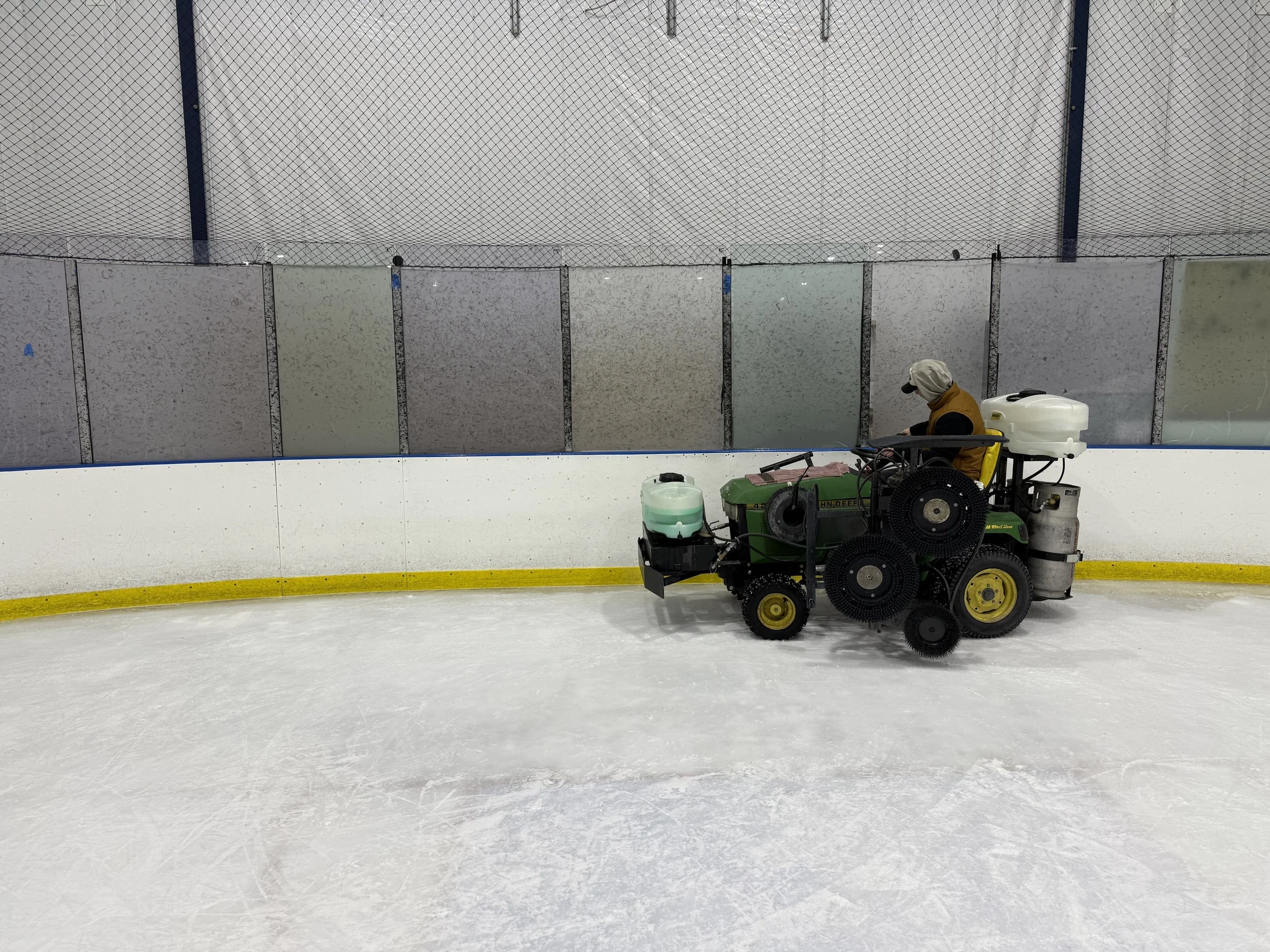 Professional rink cleaning services, specializing in dasher board and glass cleaning.